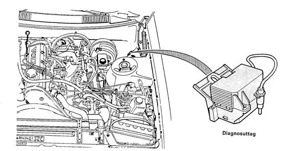 Det enklaste att ta reda på om du har en diagnosenhet är att titta efter. Det här är en bild för Volvo 240, men det är mycket snarlikt i 740.