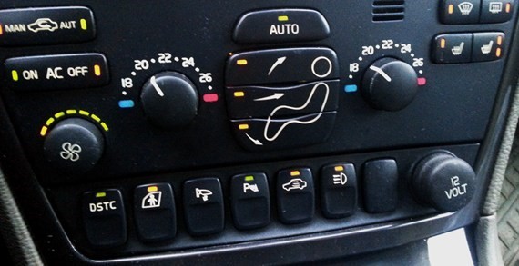 Bilen är en XC70 2006. Problemet är nu att alla dioderna som visar "status" på reglagen lyser eller så är alla släckta., se bilden.