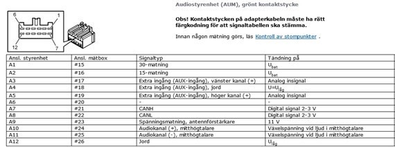 Då föreslår jag att du drar ut stereopaketet med AC-panel och tittar på stereons GRÖNA 12-poliga kontakt. Se om du har något anslutet till stift 3-4-5.. är dom tomma, ja då har du INTE original AUX. Passa även på att anteckna när din stereo är tillverkad samt modellnummer.