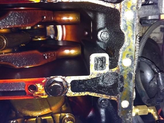 Här en bild på motorblocket, notera kanalen för vevhus vent! Och avlagringar...