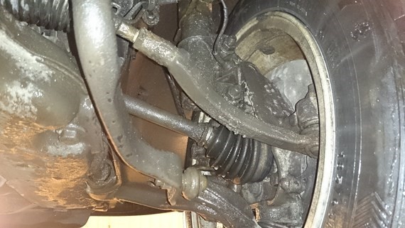 Intressant att av er ca 30 som sett bilden inte sett att det saknas ett stabilisatorstag. Detta är på höger sida, vilket jag misstänker gör att bilen lutar något åt vänster?? Vet inte hur länge den förra ägaren kört utan ett stag, ska prata med honom idag. Sist vi pratade sa han att det inte finns något på bilen som han vet om är fel eller saknas.. Lät ganska seriös och jag var inte på¨något sätt misstänksam.. Om det nu stämmer att han inte visste om detta, vad tror ni har hänt? Har den bara rostat sönder och lossnat? Vilka är konsekvenser av att köra utan ett stag? Något som tagit skada tror ni?