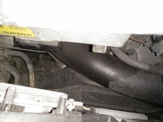 Upptäckte detta i höstas. Lite kladdigt på röret som går in i spjället. Under gårdagen kände jag efter uppe vid slangklämman