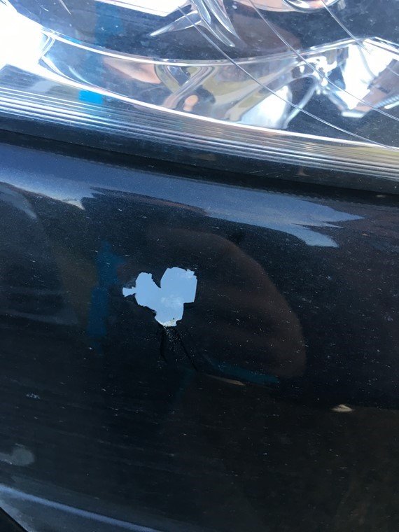 Vad tycker ni om nedan bild? Främre kofångaren är omlackerad för ett år sedan pga skada och nu flagar den som bara fasiken efter ett stenskott. Reklamera eller försöka fylla i själv? Märkte är stort som en 5-krona typ..