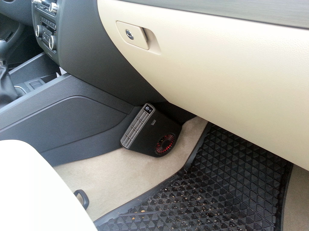 Har funderat på om man kan gömma in den bakom stereon vid mittenfacket så att den blåser ut mot sidan eller ev att man lägger upp den i barnstolen.