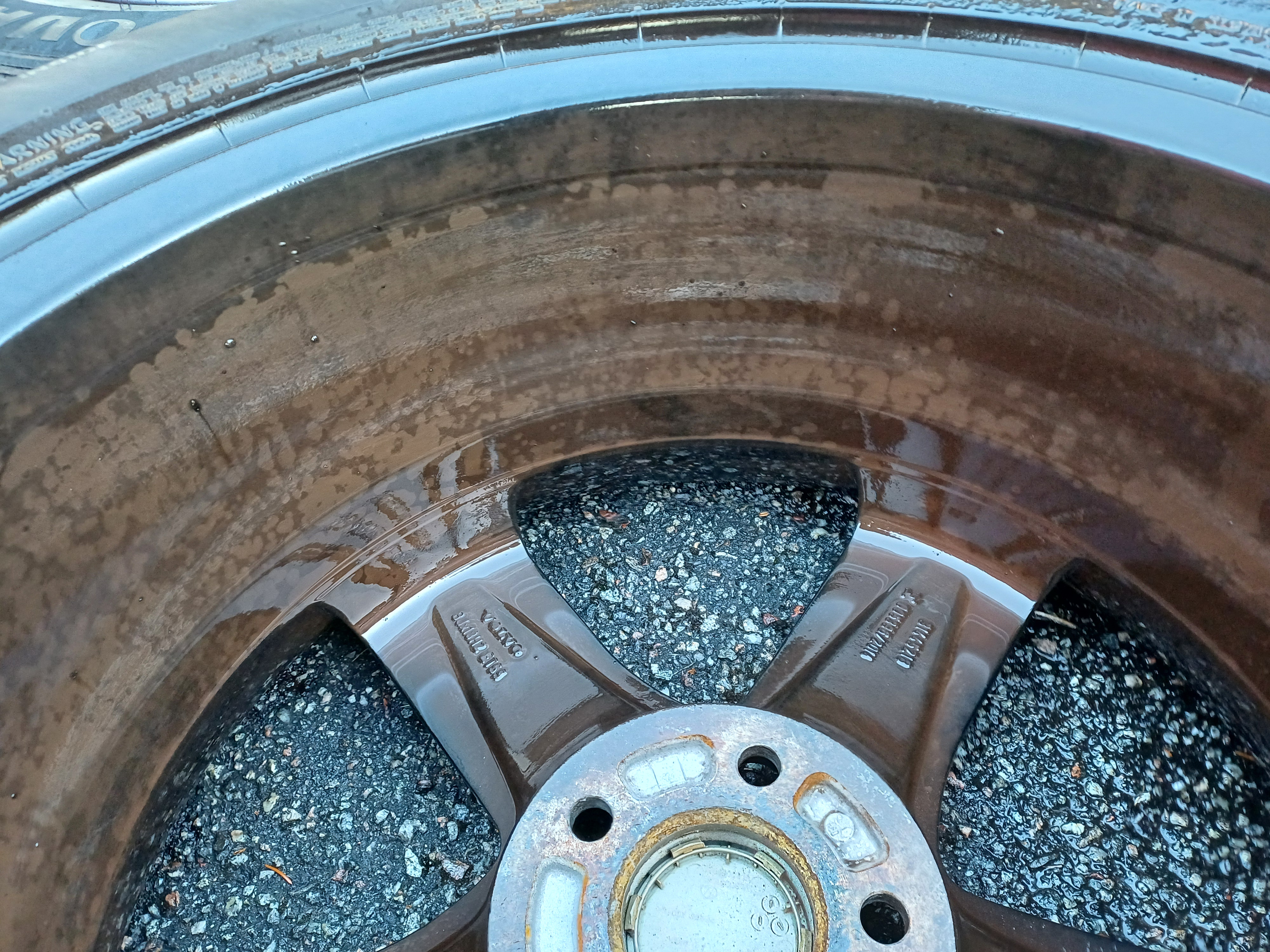 Köpte en XC60 i våras och såg redan då mellan ekrarna att insidan var rostbrunaktig av förmodat bromsdamm. Nu när det var dags att byta till vinterhjulen så såg jag mer hur illa det var. Hela inre fälgbanan var roströd/brun och vare sig avfettning, kallavfettning eller andra rengöringsmedel fick bort detta. Provade dock inte någon specifik fälgrengöring, men ska köpa det och försöka. Jag skrubbade och spolade länge och vattnet blev så klart brunt och skitigt som sjutton, men fälgens insida är fortfarande helt täckt med detta skit. Vad rekommenderas som biter på detta? Fälgen är svart annars, förutom de blanka ekerframsidorna. Det konstiga är att det ser likadant ut på alla hjulen, så tanken att något ok legat på och bränt fast bromsdamm stämmer inte riktigt heller. Är det kvaliten på klossarna som ställer till det och vad finns det som är bättre, utan att ha sämre bromsverkan?