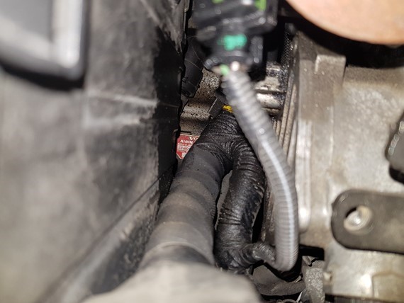 jag hade fler bilder också men har tyvärr raderat dessa. Men bilden är tagen uppifrån och det svarta till vänster är batteriboxen. Så rakt uppifrån mellan batteribox och motor. Det är alltså på vänster kortsida av motorblocket (ovanför växellådan) kan man säga.