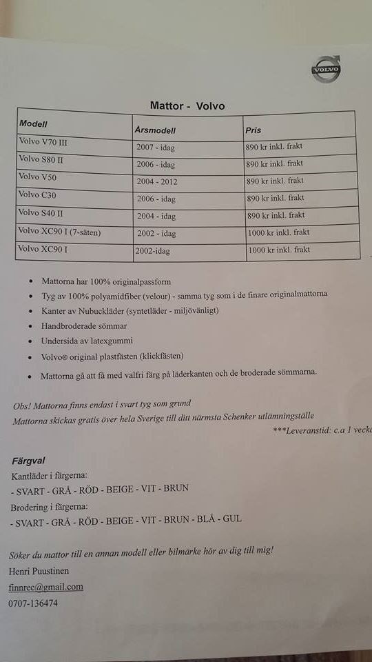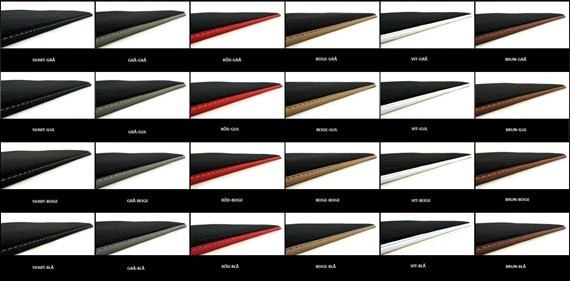 Jag köpte svart och min far mörkgrå, hade jag vetat skillnaden så hade jag själv valt mörkgrå till Volvos mörka inredning, som ni ser på bilderna så är kantsömmen på min svarta matta med grå söm lika färg som på den mörkgrå, så har ni volvos mörka inredning så välj mörkgrå matta och välj kantningen efter det.