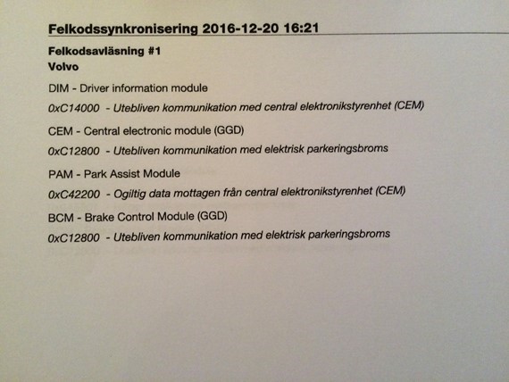 Vad tror ni om detta? Idéer och tips? Farthållaren fungerar inte heller men det borde vara logiskt med tanke på felkod för handbromsen..?