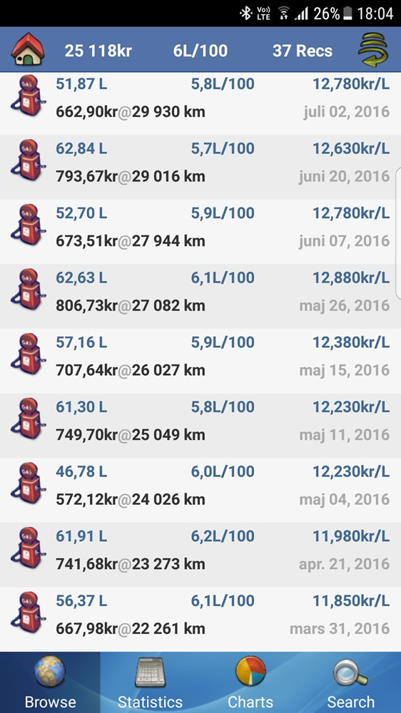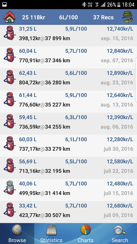Men nu har den helt plötsligt börjat dra närmare 0.7l/mil i snitt med precis samma körmönster.... Tycker det känns som lite väl mycket.
