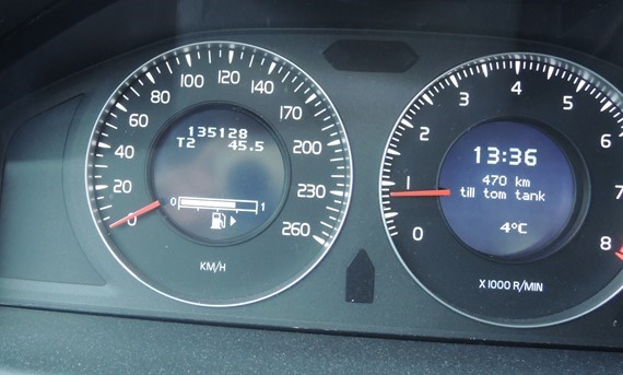 I instrumentpanelen finns ju en ikon med en bränslepump, som anger innehållet i bränsletanken. Så här ser det ut: