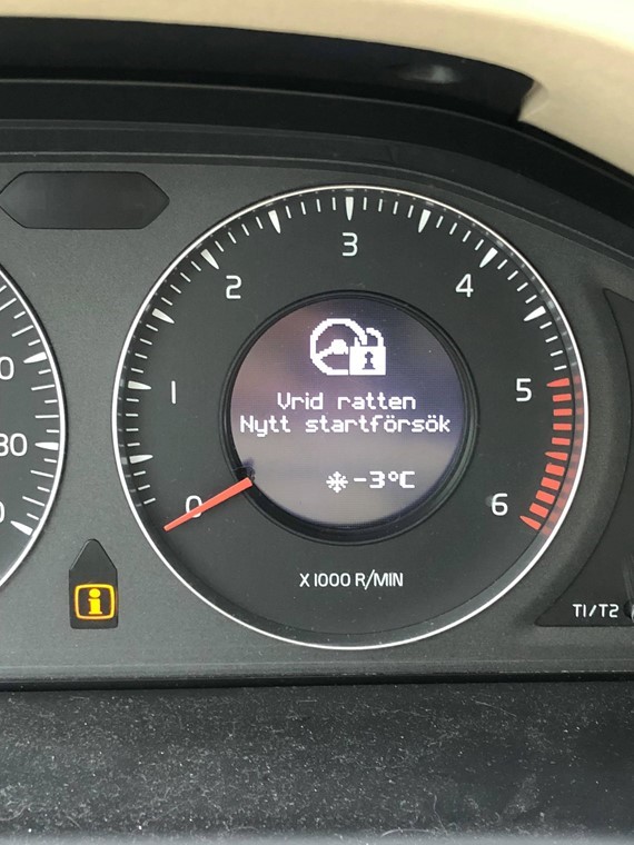 Här om dagen när bilen skulle startas dök detta konstiga felmeddelande upp och bilen gick inte att starta. Har självklart vridit på ratten men rattlåset är inte i, utan går att vrida ratten hur som helst.