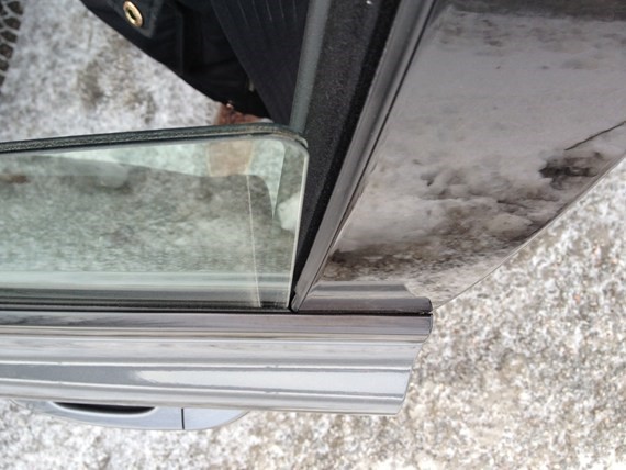 Rutan i förardörren hamnar snett sista tredjedelen ungefär. Ibland klonkar det till lite obehagligt som om något går sönder. Rutan går att köra hela vägen ner men det känns lite riskfyllt. Uppfärden går långsamt och låter ansträngt.