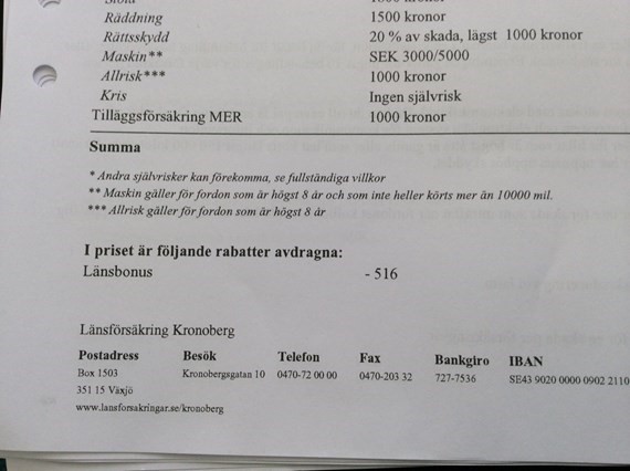 Har idag varit på väg att byta försäkringsbolag från Länsförsäkringar till Volvia pga att Volvia har 15000 mil på maskinskadan, döm om min förvåning när det nya avtalet från LF ramlade ner och de nu har ändrat villkoren från 10000 mil till just 15000 mil. Gött